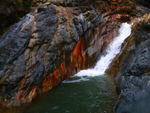 Les toboggans naturels, sculptés par l’érosion, sont un vrai régal. Glisser le long de ces goulottes rocheuses, propulsé par le courant, procure une sensation de liberté unique. Les sauts dans les vasques cristallines sont tout aussi grisants, surtout quand on atterrit dans une eau fraîche et transparente, entourée de parois rouge orangé.