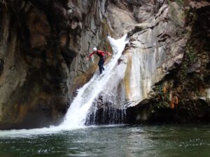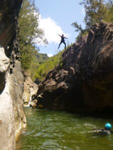 Les sauts en canyon sont des moments d’adrénaline pure, où il s’agit de sauter dans des vasques naturelles depuis des hauteurs variables (de 1 à 12 mètres).
